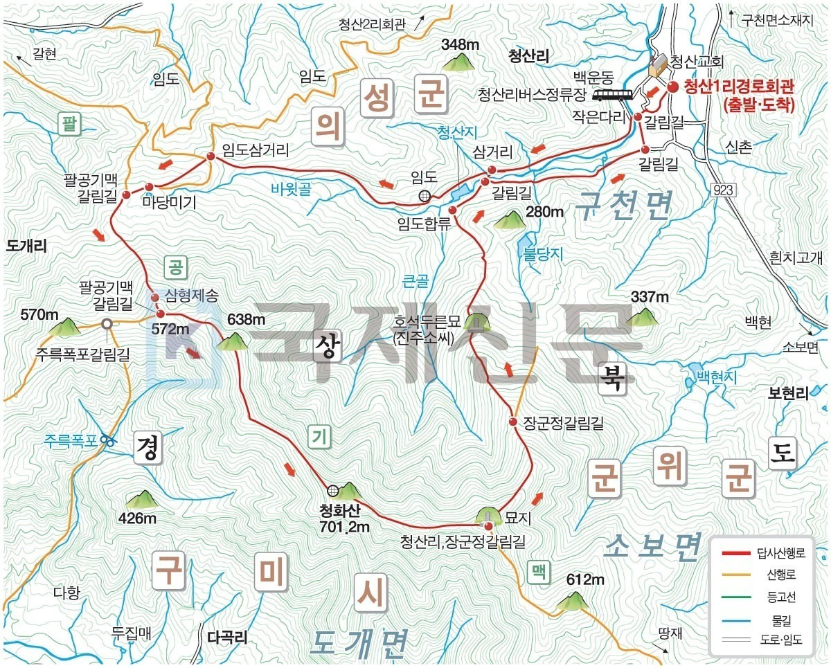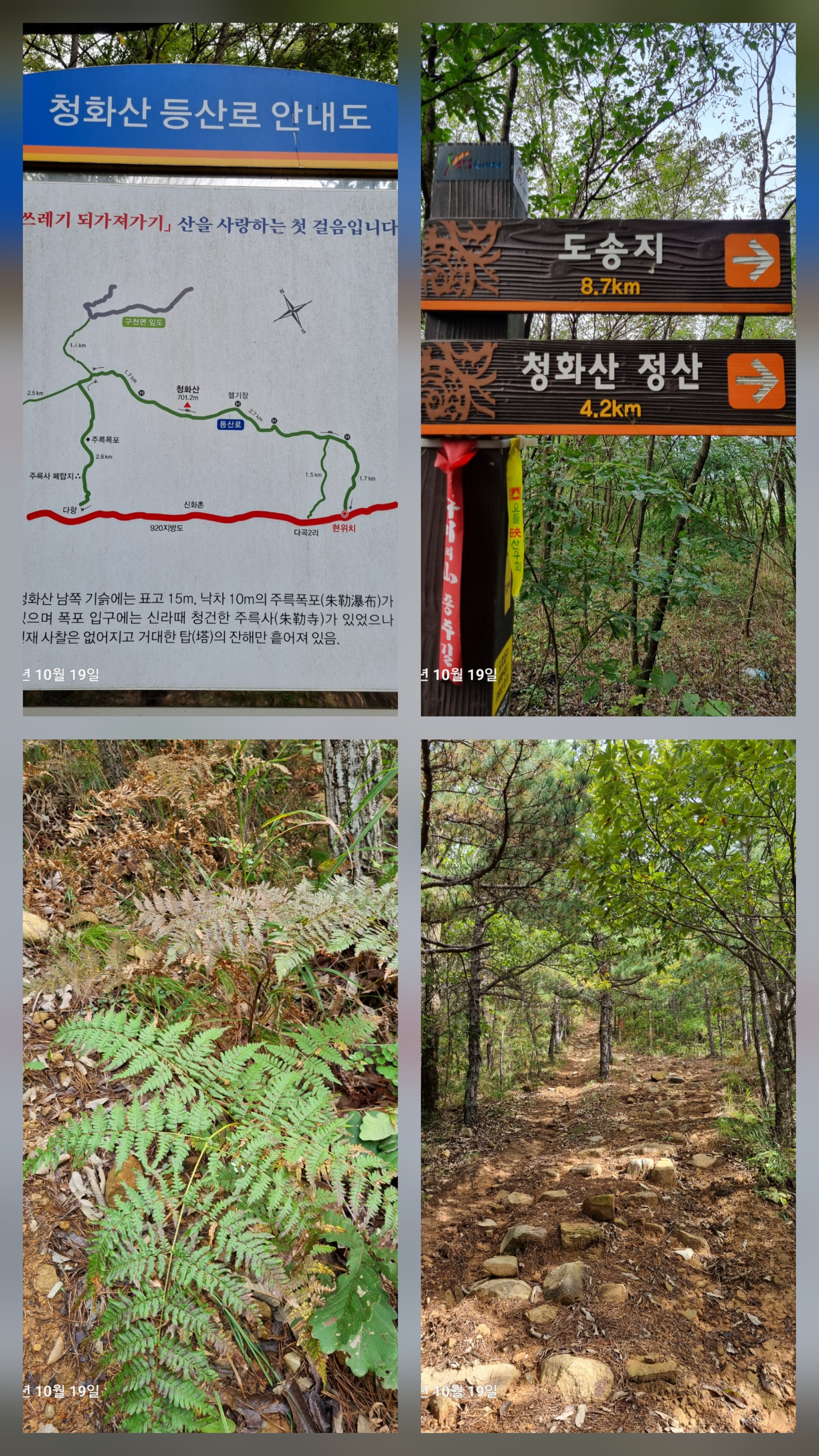 ☞. 이동코스/거리는? : 약사전 주차장→다곡2리 갈림길→헬기장→청화산(정상)→다곡2리(하산)→원점회귀 (이동거리 왕복 약 8.8km),