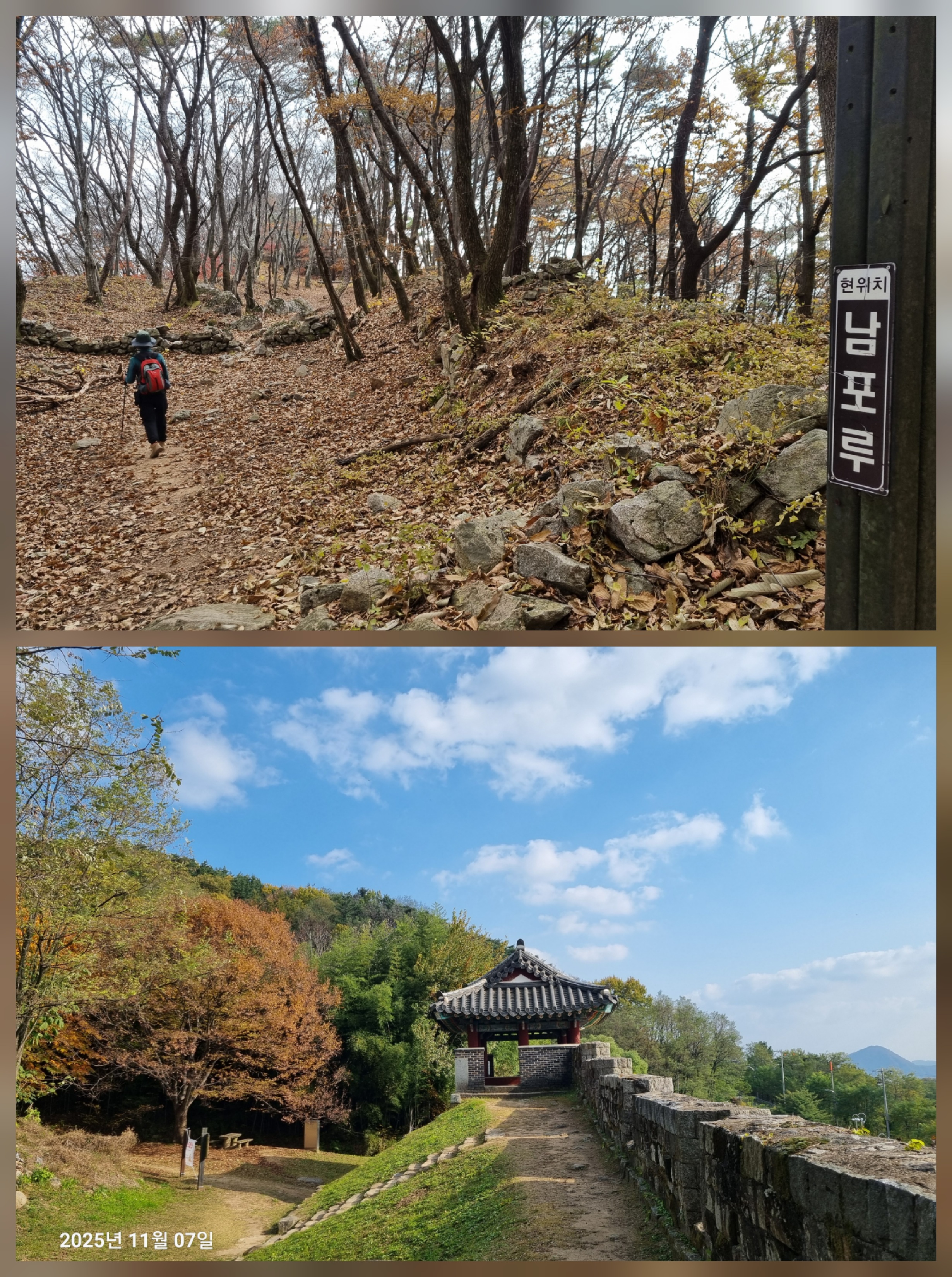 남포루 산성을 따라 하산, 진남문에 도착하고 하루를 마치면서 귀가합니다.